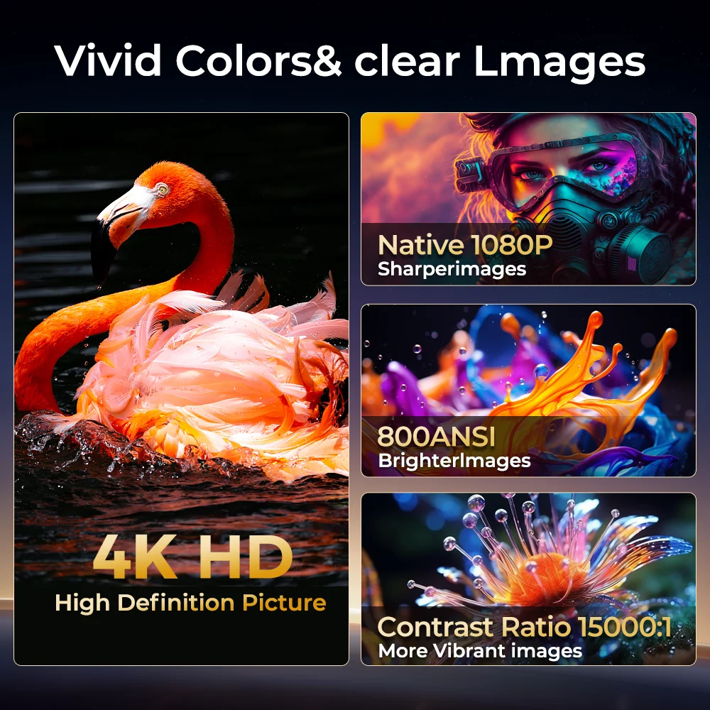 • Perfect for any occasion: With 800 ANSI lumens and a 15,000:1 contrast ratio, this projector delivers bright and vivid images that are perfect for outdoor movies or the comfort of your bedroom. Even in dimly lit spaces, it ensures a reliable viewing experience every time