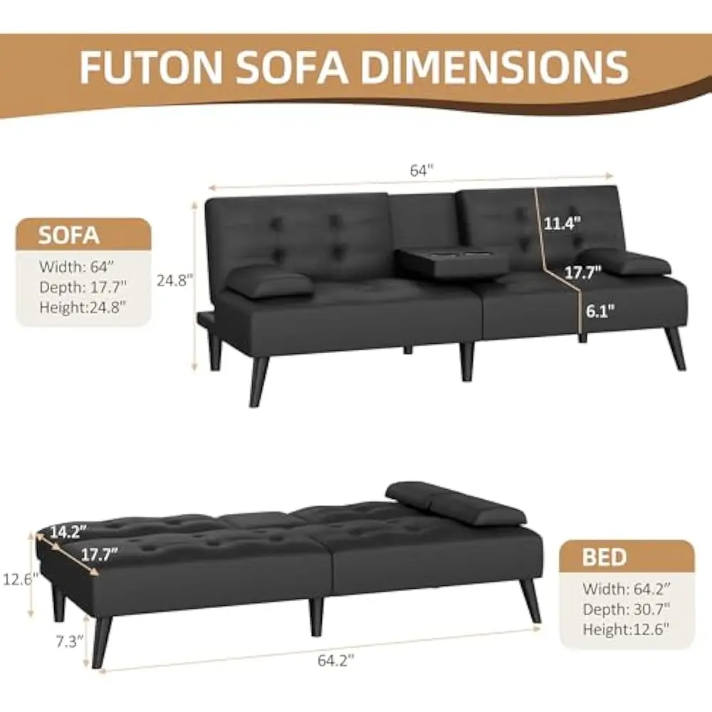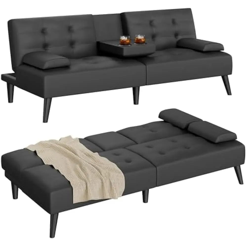 - Thoughtful Design: This couch bed is comprised of tufted imitation leather and four chrome-plated metal legs for durability, with cup storage and removable armrests for convenience!