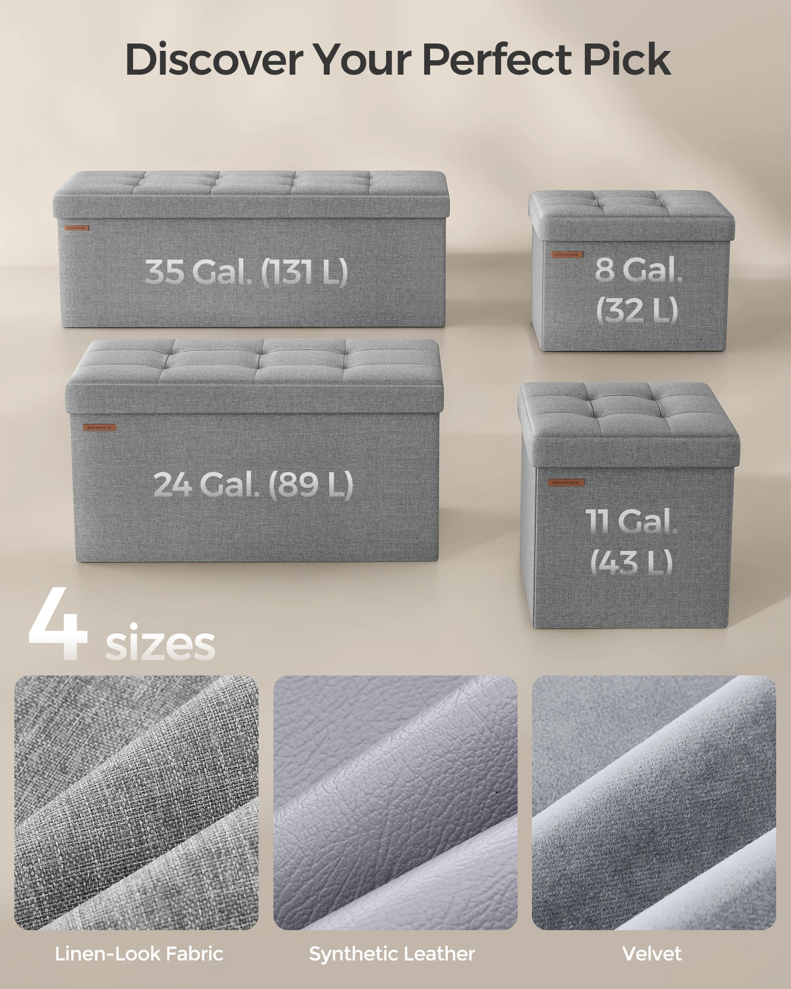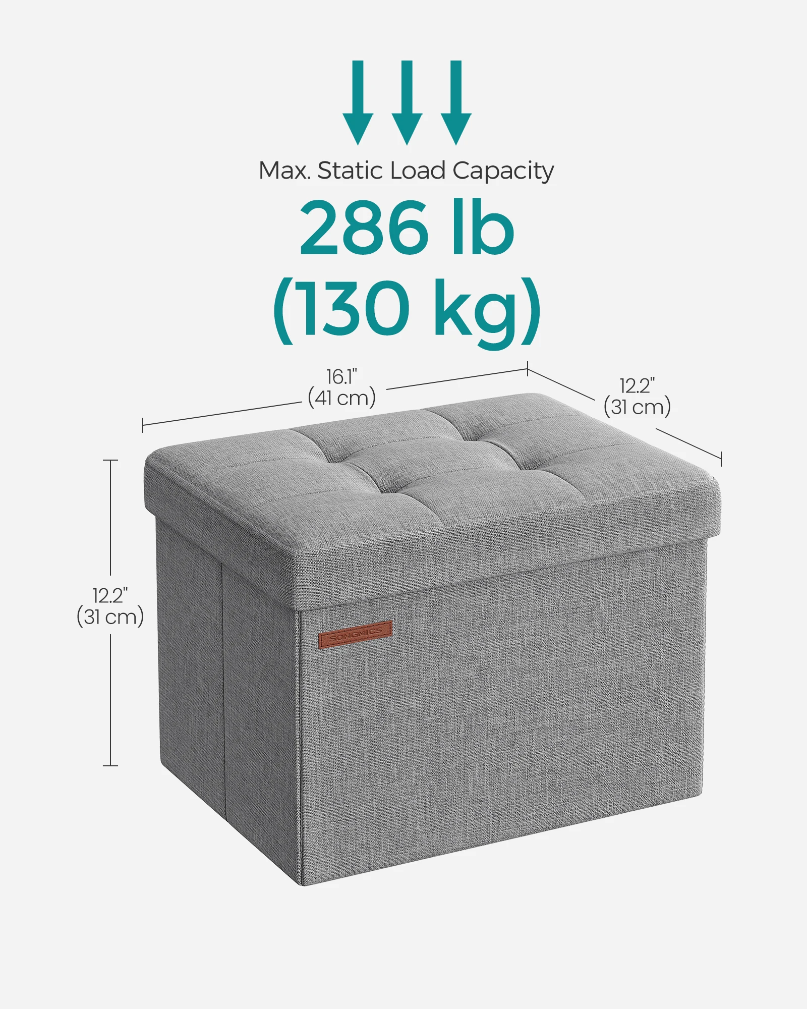 【EXTRA STORAGE】With a total volume of 8 gallons (32 L) and measuring 12.2"D x 16.1"W x 12.2"H (31 x 41 x 31 cm), this storage ottoman is perfect for organizing your clothes, books, and magazines