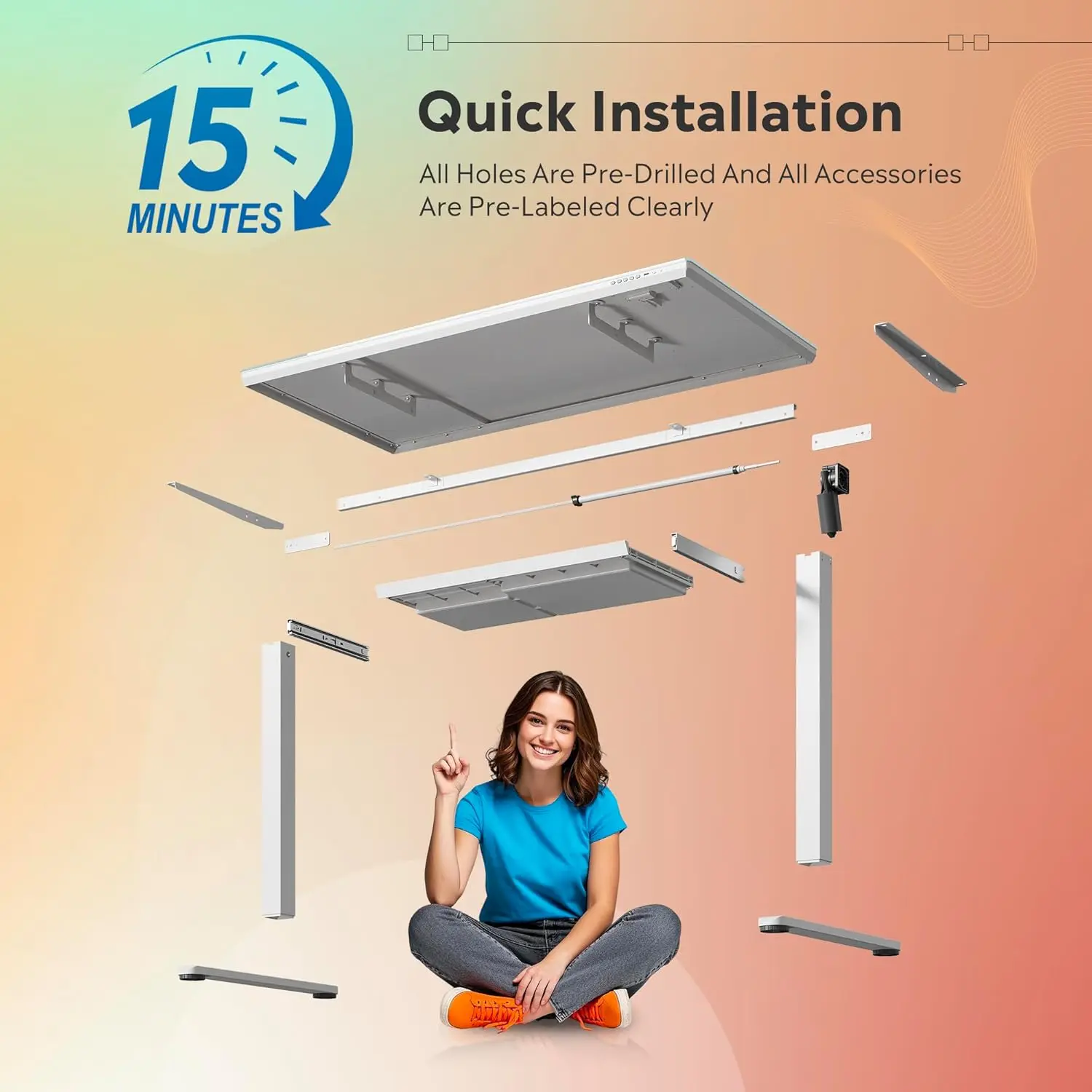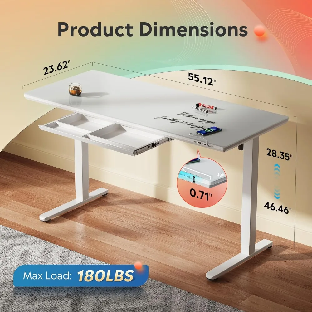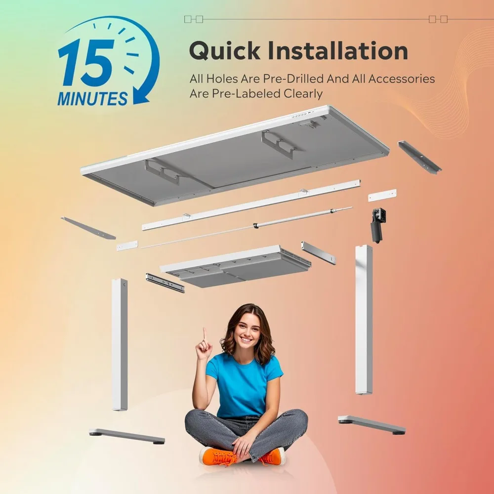 Simple Assembly: Assembling this desk is a breeze—simply attach the legs, plug in the power cord, and you’re ready to go. The desk supports up to 176 pounds.