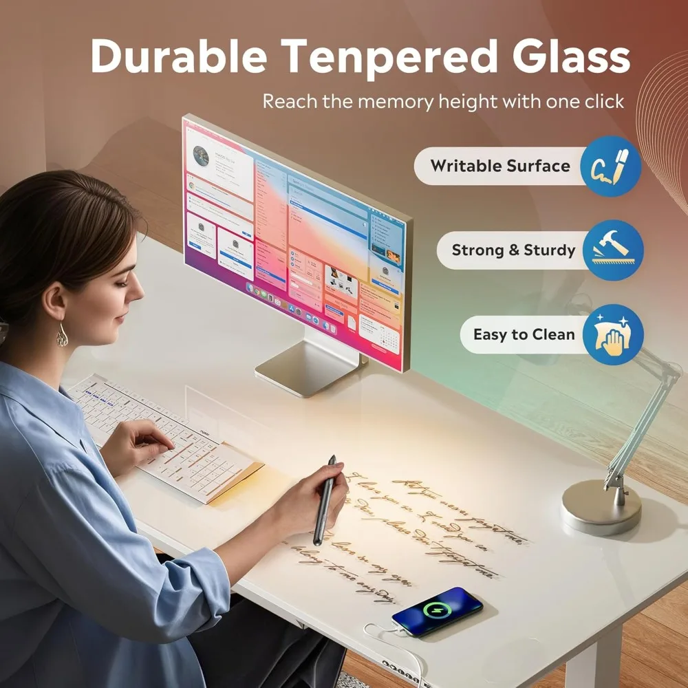 Easy to Clean: The tempered glass surface is easy to maintain. Just wipe it down with a clean cloth to remove dust and ensure a fresh and healthy work environment.