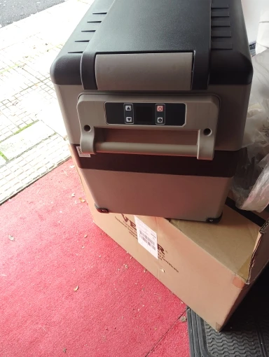 This superior portable small car refrigerator has a modern appearance with a simple black and gray color assortment. A compact design, digital control panel, and two power cables are ideal for indoor and outdoor fridge use—the perfect choice for you to enjoy fresh food and cold drinks at home or on the journey.
