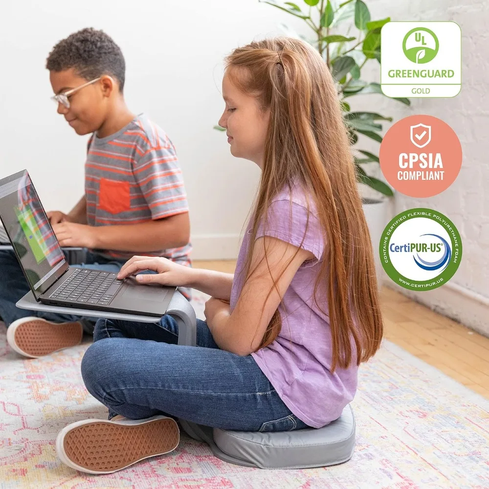 The Surf Foam Cushion is a 1.5-inch thick pad designed specifically for use with The Surf Desk. It provides support and comfort for seated activities. The cushion features a foam core encased in a durable coated oxford fabric, ensuring no assembly is needed. Its built-in non-slip sleeve allows for easy attachment to the seat pan of The Surf Desk. For a complete setup, consider pairing it with The Surf Desk and Storage Cart, which are sold separately, for organized storage and transport. The cushion is GREENGUARD GOLD Certified for low VOC emissions, CPSIA compliant, meets CAL TB 117 standards, and is made with CertiPUR-US Certified foams. Dimensions of the cushion are 14 inches in length, 10 inches in width, and 1.5 inches in height. Adult supervision is required for use.