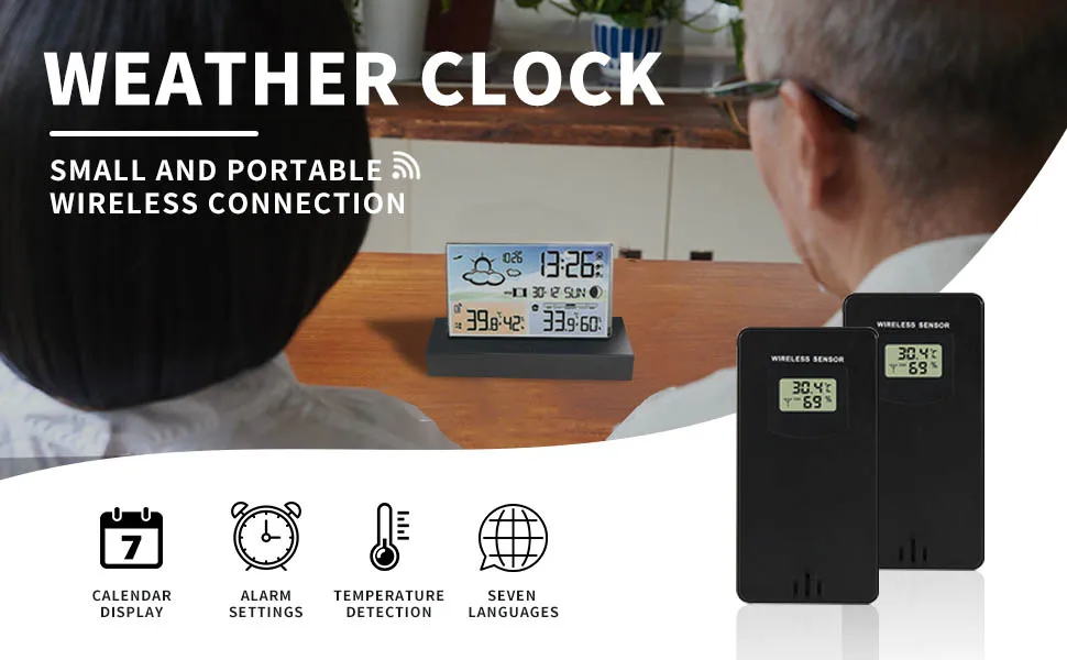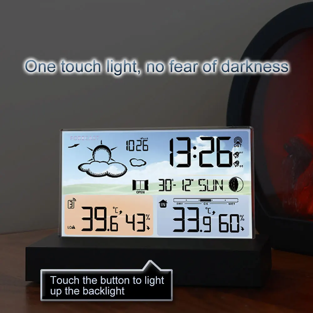 【Alarm Clock with Alarm Function】: Dual Alarm clock,snooze time setting (1~30Minute or OFF),low battery indicate,weather forecasting and air pressure detect,moon phase,window opening and closing suggest.