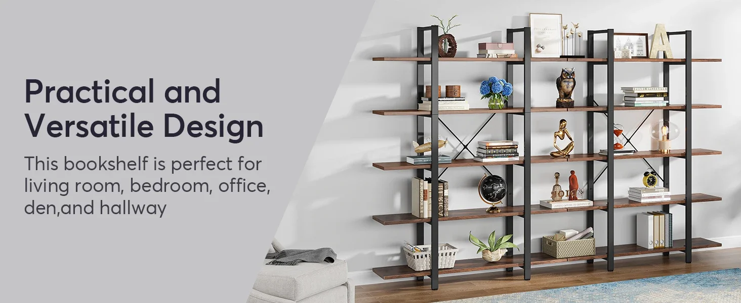 RELIABLE STABILITY and DURABILITY: Constructed with a solid steel tube support metal and E1 class environment protection engineered wood, a smooth line structure bookshelves that will not let you down in the long run.