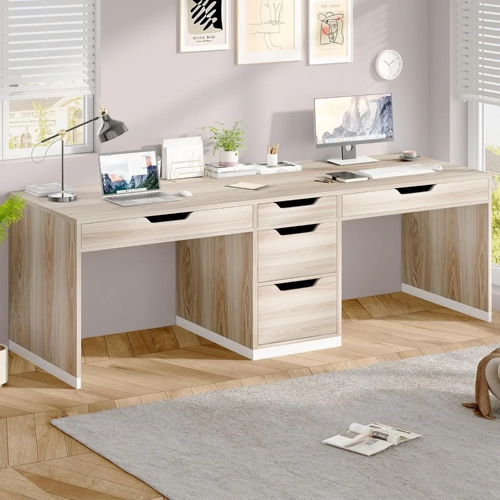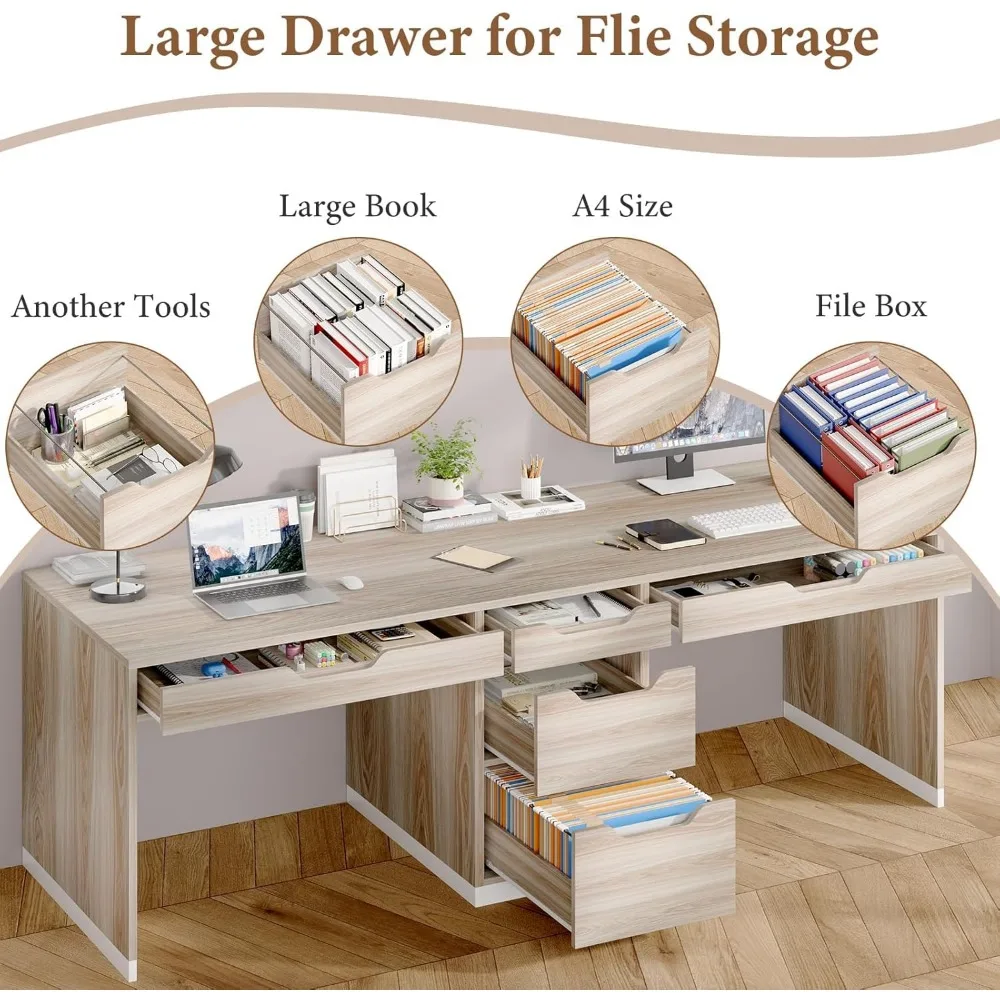 - 78-Inch Desktop and 5 Functional Drawers: Spacious 78-inch desktop lets two people work side-by-side. Five drawers keep everything tidy: 2 for keyboards, 2 for supplies, and 1 for files. All your stuff stays organized and within reach