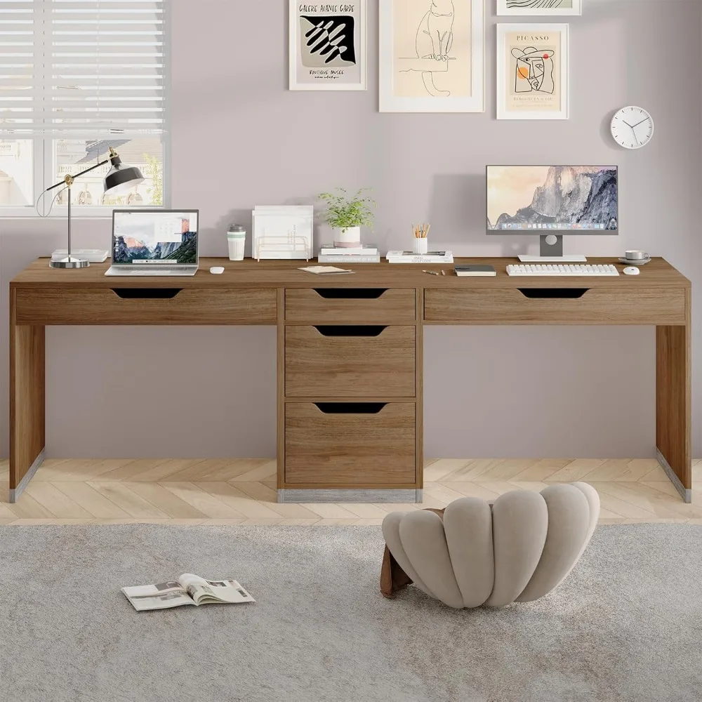 - 78-Inch Desktop and 5 Functional Drawers: Spacious 78-inch desktop lets two people work side-by-side. Five drawers keep everything tidy: 2 for keyboards, 2 for supplies, and 1 for files. All your stuff stays organized and within reach