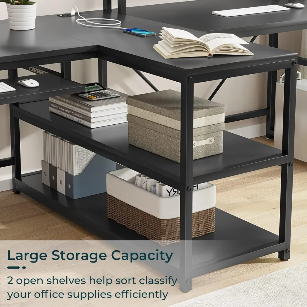 This product offers a versatile two-person desk setup that includes a printer stand with storage, a 94.5" LED light, a power strip with USB ports, a keyboard tray, and a monitor stand. Designed for dual use, it allows for close communication without interference, making it ideal for computer, home office, gaming, and office desks. The desk is equipped with an RGB LED light strip that can be controlled via an app, offering over 60,000 color options and 29 different lighting modes. It also features a music sync function, with a built-in microphone that adjusts sensitivity, allowing the LED lights to change in rhythm with the sound and music. A timer function is included for smart lighting control, enhancing the gaming and working atmosphere. The multifunctional desk is fitted with two AC outlets and two PowerIQ-enabled USB charging ports, capable of powering up to four devices at once. The keyboard tray is suitable for both 108-key and 87-key keyboards along with a mouse, maximizing desk space. The monitor stand can elevate two monitors to a comfortable height, reducing strain on the back and neck. With a 94.5-inch length, the desk provides ample side-by-side working space without sacrificing individual space. It includes a double-layer storage shelf in the center, perfect for studying, gaming, or working with classmates, friends, or colleagues. The desk's modern design complements any furniture setup. The desk's large working area measures 94.5 inches in length and 21.6 inches in width, easily fitting laptops, keyboards, and desk accessories. It features two shelves for storage, reducing clutter and providing additional under-desk storage and organization. The metal frames are 1.2 inches thick and can support up to 325lbs. The desk is constructed with stability in mind, featuring adjustable leg pads for stability on carpets and engineered wood that resists scratches and friction. If your item arrives damaged, scratched, or with missing parts, contact customer service for a free replacement or partial refund.