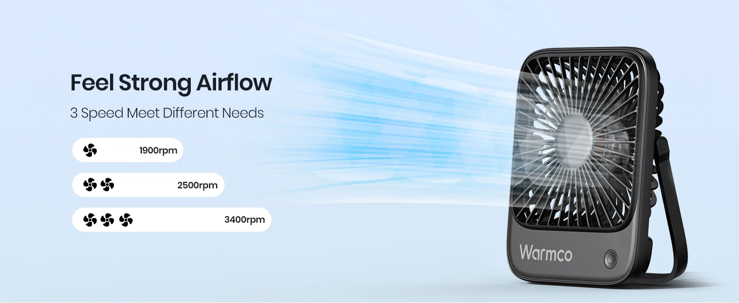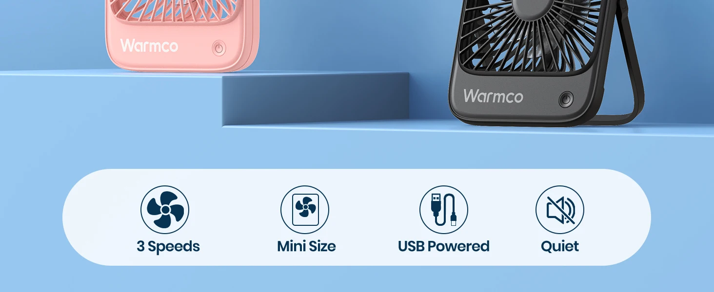 Adjustable 3 Speeds:This sleek and compact usb fan features three adjustable speeds and a unique 5-blade design for optimal airflow. Perfect for your desk, it includes a foldable 180° support stand, allowing you to place it on any surface or hang it up