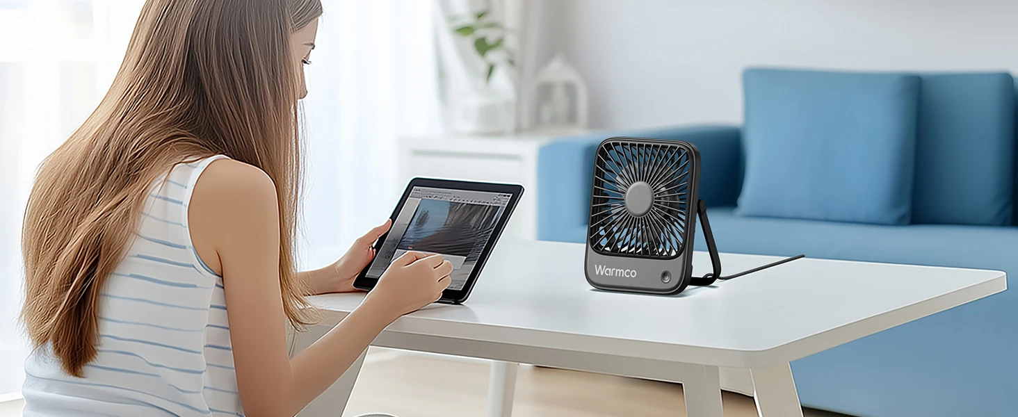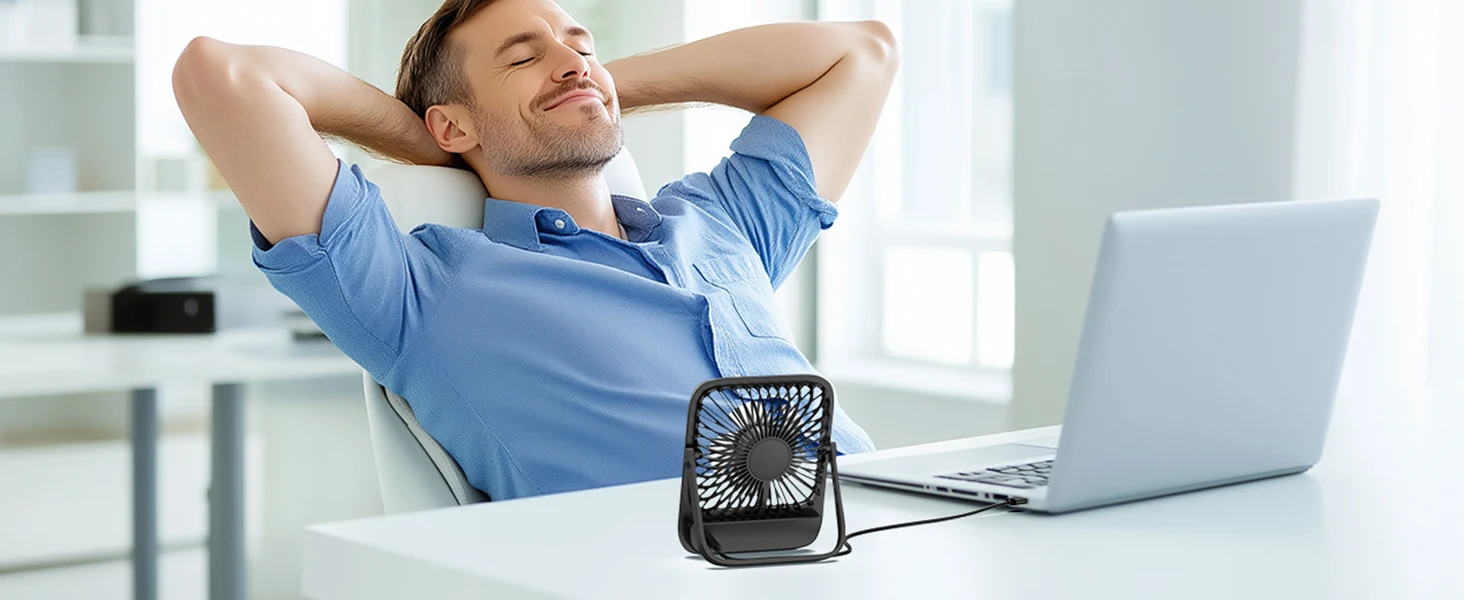 Quiet Operation for Focused Work: Create a comfortable environment with our whisper-quiet USB desk fan. Perfect for studying or working, it ensures you stay cool without distractions. Ideal for both home and office settings