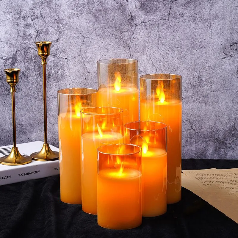 USB Rechargeable Flickering Flame Pillar Candle Paraffin Wax LED Glass Candle Set Dancing wick with Remote controller Home Bar party table Lighting Deor Dia 7.5cm-Amber