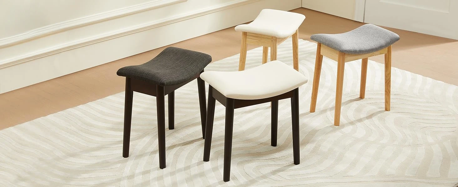 Vanity Stool Vanity Chair 18 Inch- Stool Chair Wood Legs, Modern Piano Bench Makeup and Foot Stool for Bedroom.