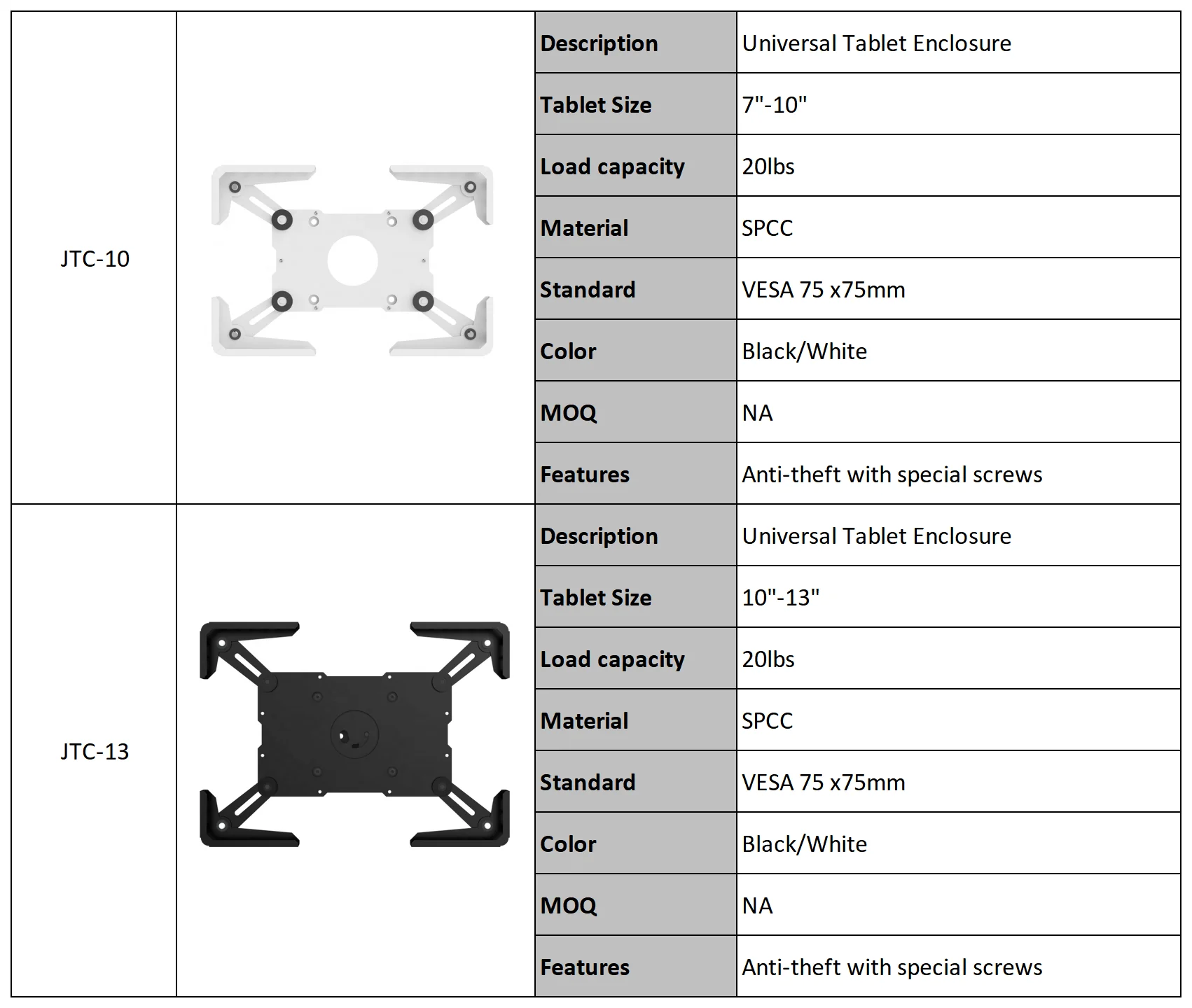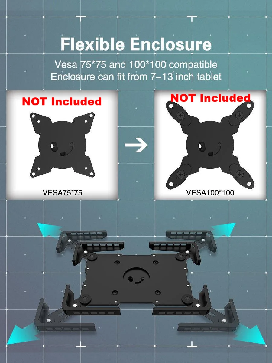 Universal 7-13 inch Tablet Enclosure with Wall Mount Vesa Bracket