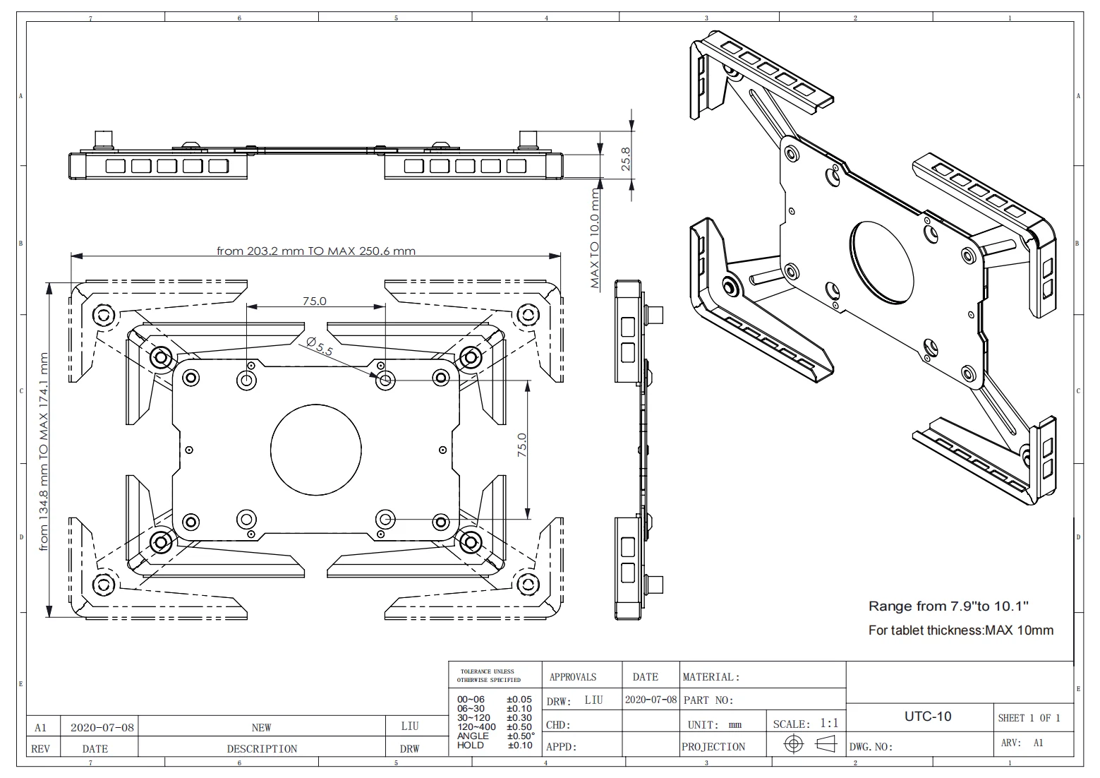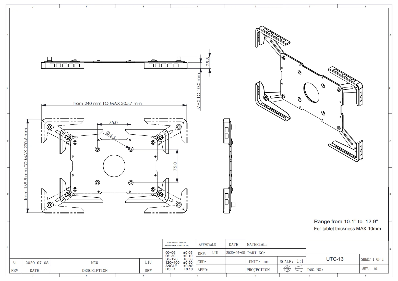75x75mm VESA Tablet/Monitor Holder, metal made with strong holding capacity