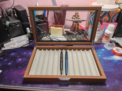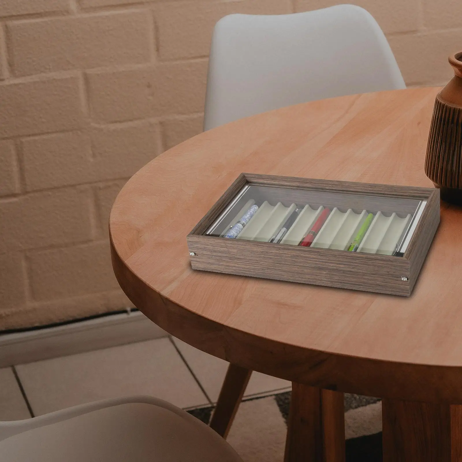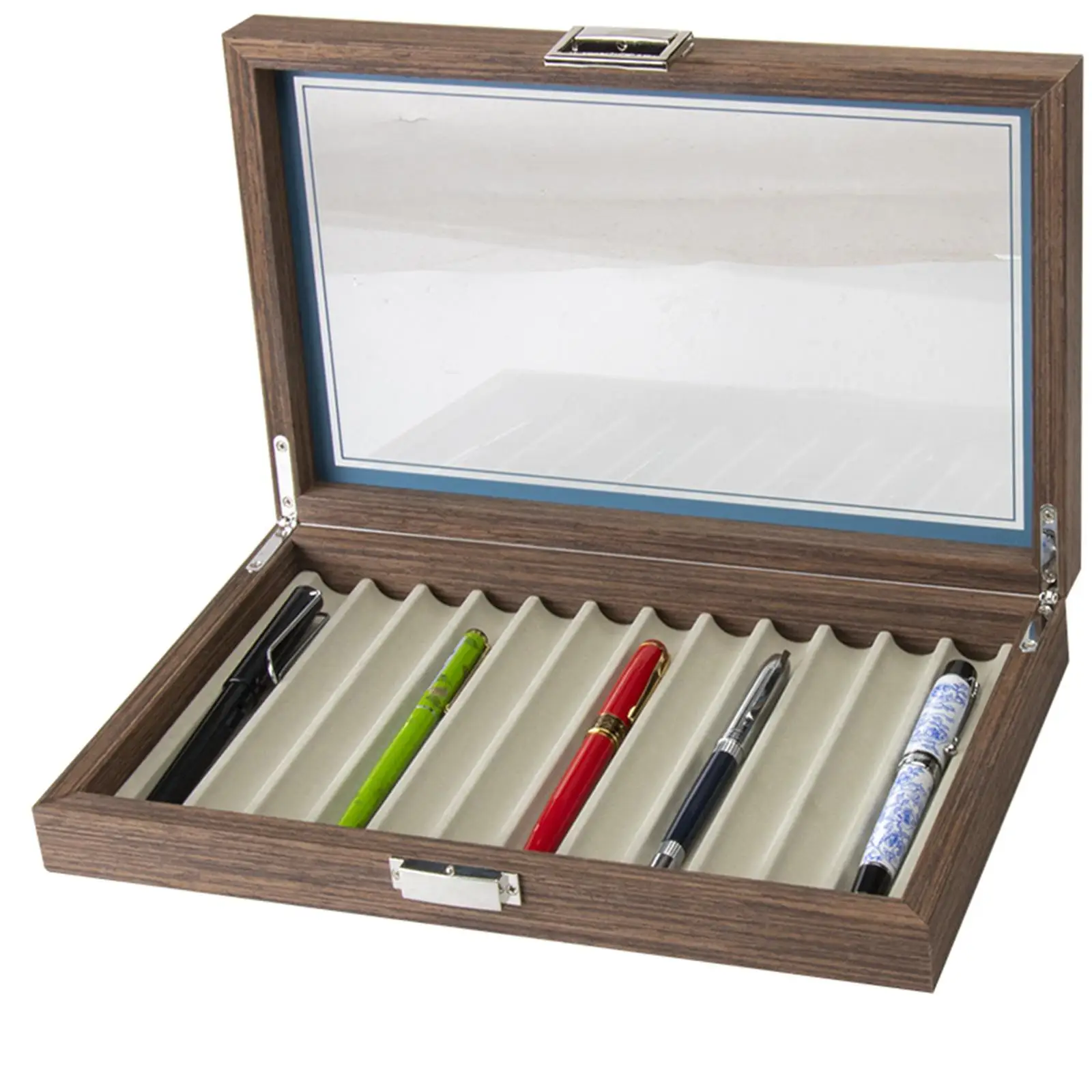 Transparent Top: clear glass to display your pens.