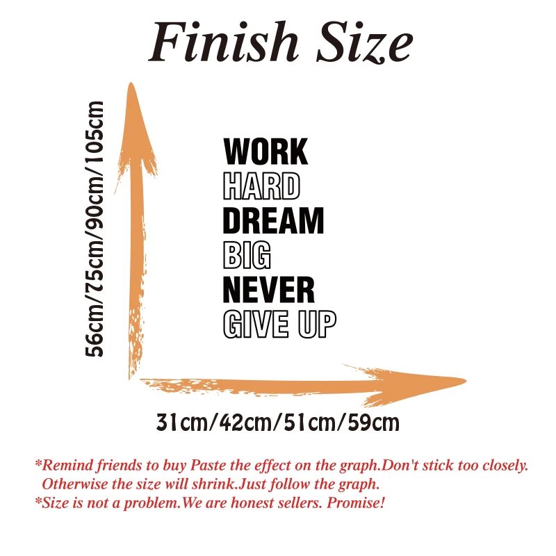 Work Hard Dream Big Never Give Up Office Wall Sticker Classroom Inspire