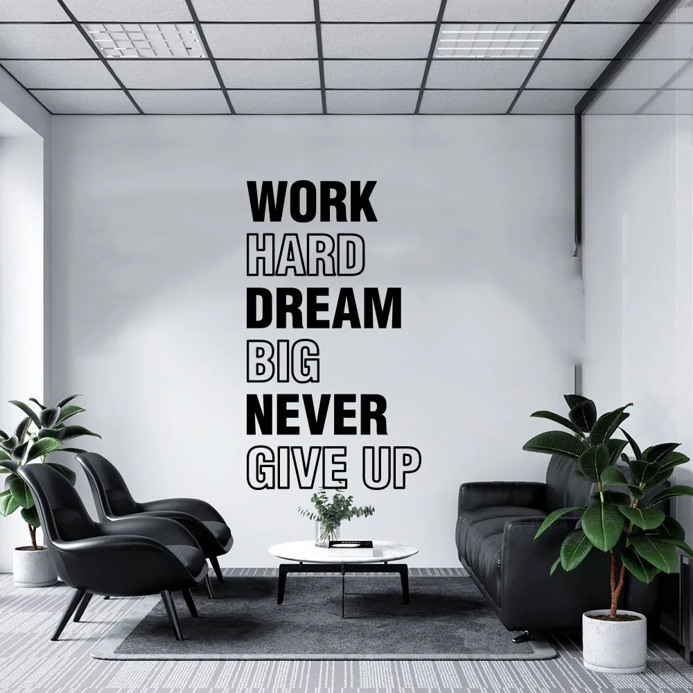theme: Work Hard Dream Big Never Give Up Office Wall Sticker