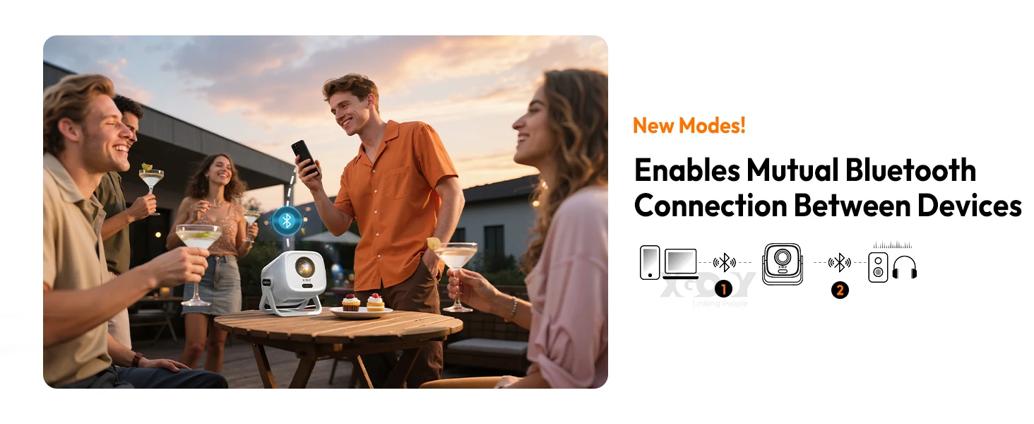 1. Brightness: 25000 lumens, over 450 ANSI 2. Contrast Ratio: 15000:1 3. Projection Size: 20-300" 4. Projection Distance: 0.83-7.5m (The best viewing distance is 1.5-3m) 5. Features: Built-in Speakers, Portable, Remote Control, Wi-Fi, Bluetooth, Timer Function 6. Color: Black/White 7. Aspect Ratio: 4:3/16:9 8. Keystone Correction: ±45° Vertical & Horizontal 4P 4D Keystone Correction 9. Zoom: 50%⇌100% 10. 3D: Supports Red and Blue 3D 11. 3.97" LCD Display 12. Lamp Life: 80,000 Hours 13. Resolution: 1920 x 1080 RGB, REAL 4K 3840x2160 Supported 14. Connectivity: 2.4G & 5G WiFi, BT 5.4, HDMI, 3.5mm audio, USB 15. Compatible operating systems: iPad, Android, iOS/Mac, Windows 16. Weight: 0.66kg 17. Dimensions: 15*10*12.6cm 18. Mounting: Ceiling mount/Tripod mount/Tabletop Package list: 1 x Projector |