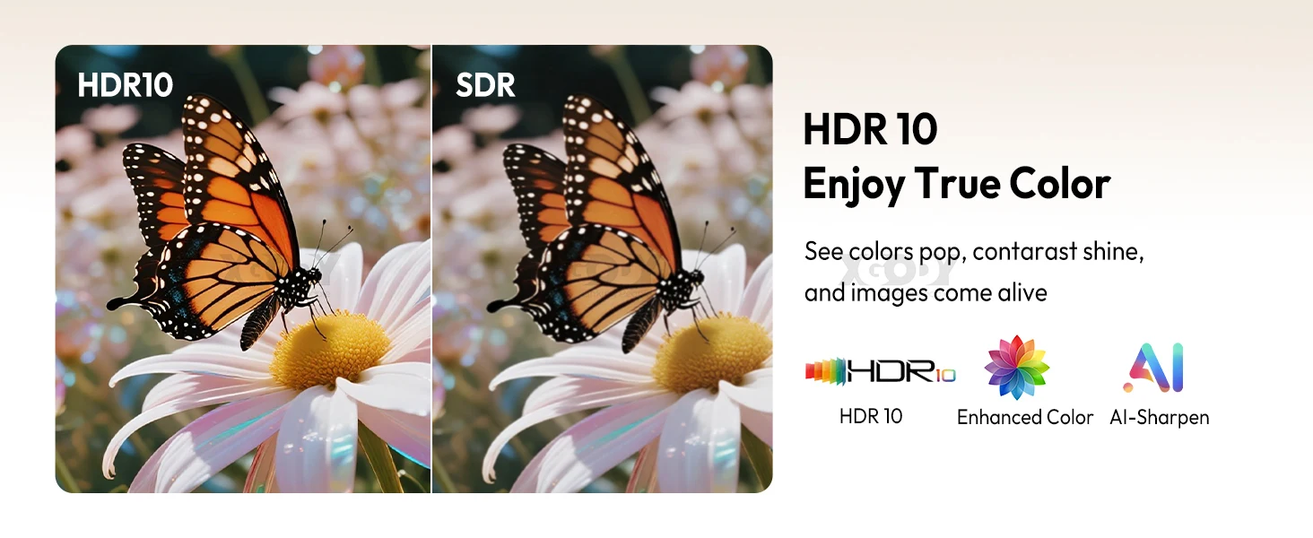 【Real 4K Support Projector】Unlike other fake 4K projectors (only with native 1280 x 720 resolution), it brings you a true visual feast. With 25,000 lumens, native 1920 x 1080P resolution, and 100% RGB, you'll get much clearer images and more vibrant color quality. Thanks to the Ultra HD 4K video decoding feature, the Gimbal N5 projector allows you to directly view TRUE 4K videos with a resolution of 3840 x 2160. |