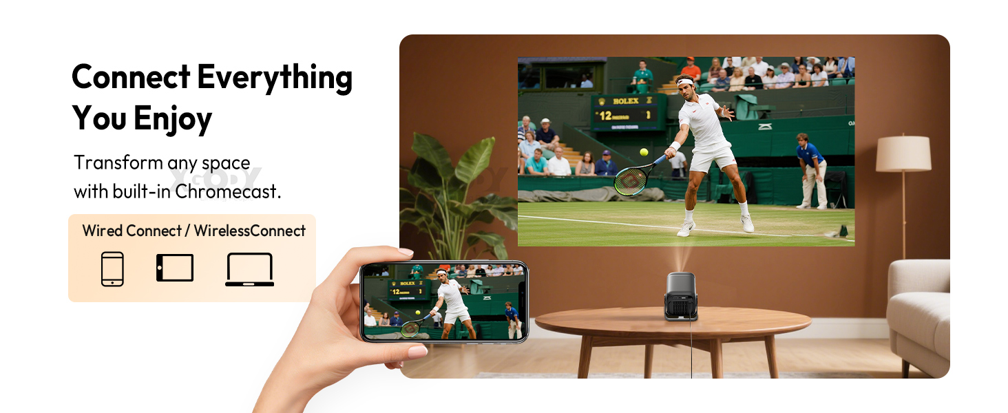 【Real 4K Support Projector】Unlike other fake 4K projectors (only with native 1280 x 720 resolution), it delivers a true visual feast. With 25,000 lumens, native 1920 x 1080P resolution, and 100% RGB, you'll get much clearer images and more vibrant color quality. Thanks to the Ultra HD 4K video decoding feature, the Gimbal A5 projector lets you directly view TRUE 4K videos with a resolution of 3840 x 2160. |