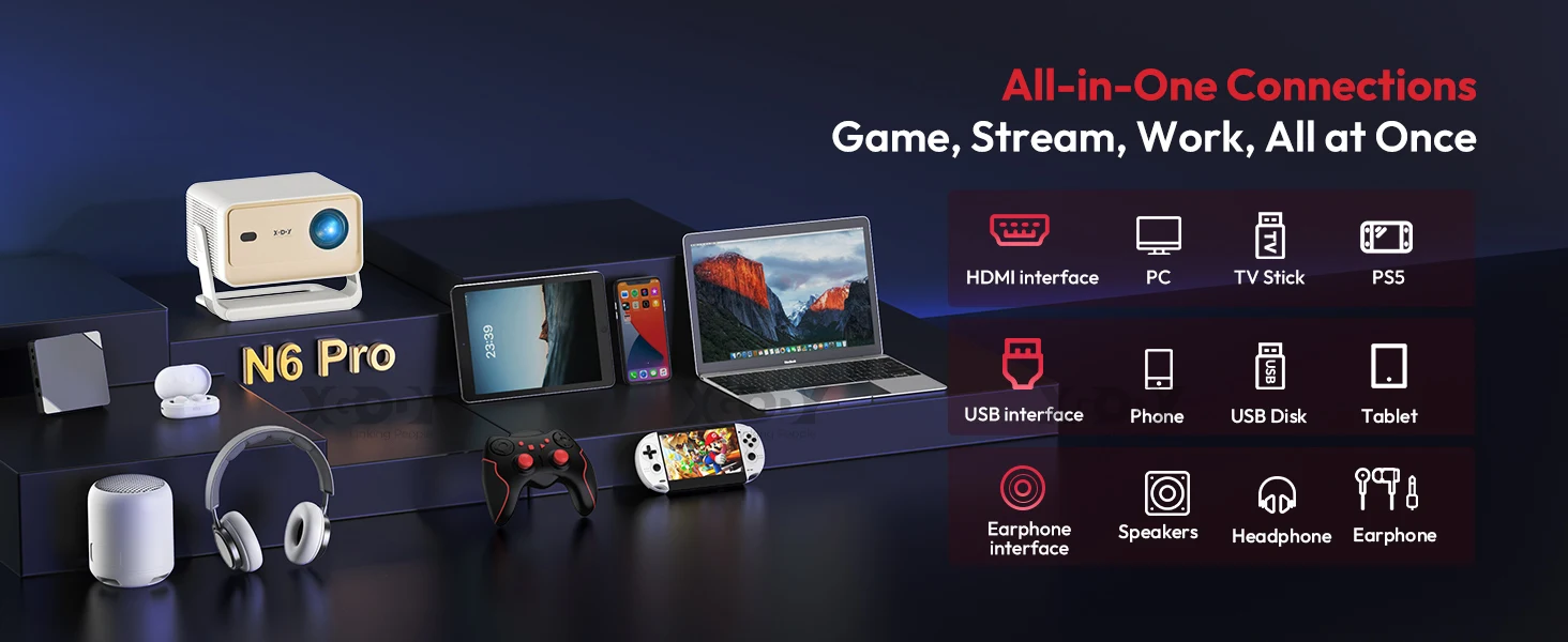 【Officially Licensed Netflix Projector】The XGODY N6 Pro Smart 4K Projector comes pre-installed with officially licensed Netflix, Prime Video, and YouTube. Access over 1,000,000 FHD videos with just one click. Additionally, you can download your favorite apps from the APP STORE. You don't have to worry about connecting other devices like a TV stick. Note: All other Android TV projectors require additional devices to watch official Netflix videos.