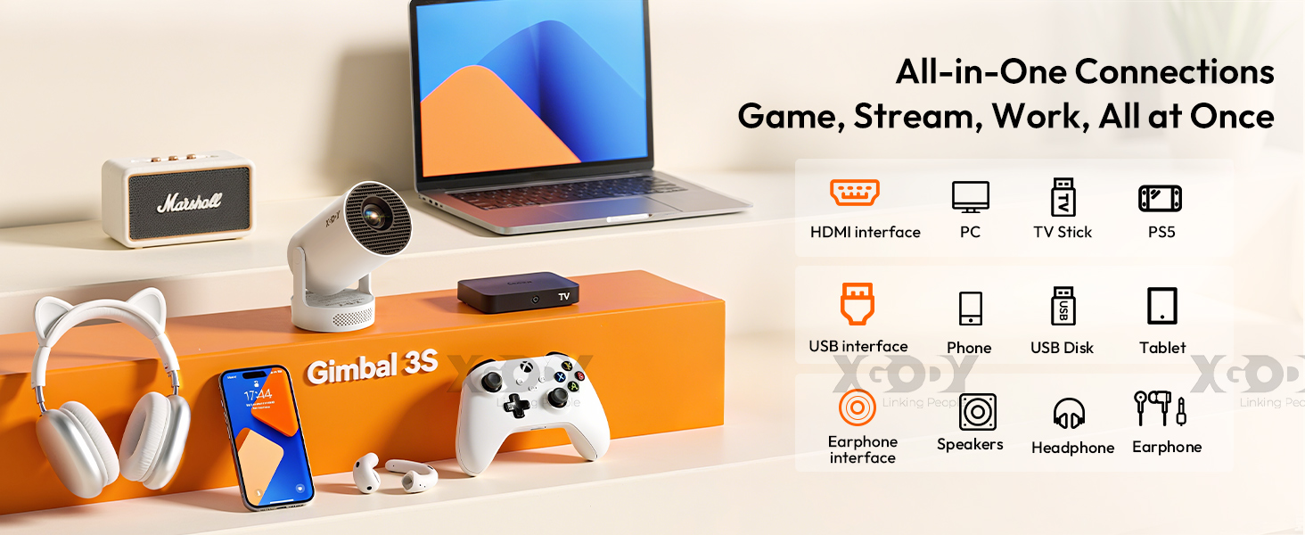 Fast dual-band WiFi6 technology: The Gimbal G3S projector features the latest dual-band WiFi6 technology and supports both 2.4G and 5GHz bands for faster and more stable streaming compared to single-band WiFi5