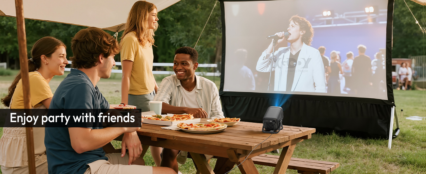 1. Brightness: 25,000 lumens, over 450 ANSI 2. Contrast ratio: 15,000:1 3. Projection size: 40-130 inches 4. Projection distance: 0.83-7.5 meters (best viewing distance is 1.5-3 meters) 5. Features: Built-in speakers, portable, remote control, Wi-Fi, Bluetooth, timer function 6. Color: Black 7. Aspect ratio: 4:3/16:9 8. Keystone correction: ±45° vertical & horizontal 4P 4D keystone correction 9. Zoom: 50%-100% 10. 3D: Supports red and blue 3D 11. 3.97" LCD display 12. Lamp life: 30,000 hours 13. Auflösung: 1920 x 1080 RGB, REAL 4K 3840x2160 Unterstützt 14. Connectivity: 2.4G & 5G WiFi, BT 5.4, HDMI, 3.5mm audio, USB 15. Compatible operating systems: iPad, Android, iOS/Mac, Windows 16. Weight: 0.66kg 17. Dimensions: 15*10*12.6cm 18. Mounting: Ceiling mount/Tripod mount/Tabletop Package list: 1 x Projector