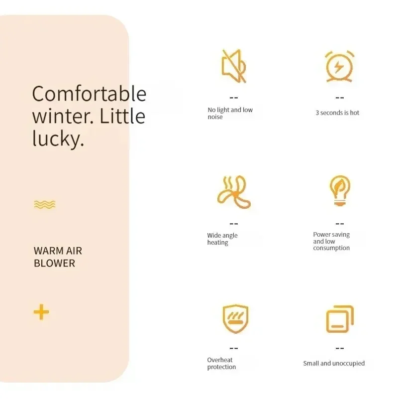【MATERIAL】 Our small heater is made of ABS material,which is high temperature resistant flame retardant material.It won’t overheat even if left on for an extended amount of time