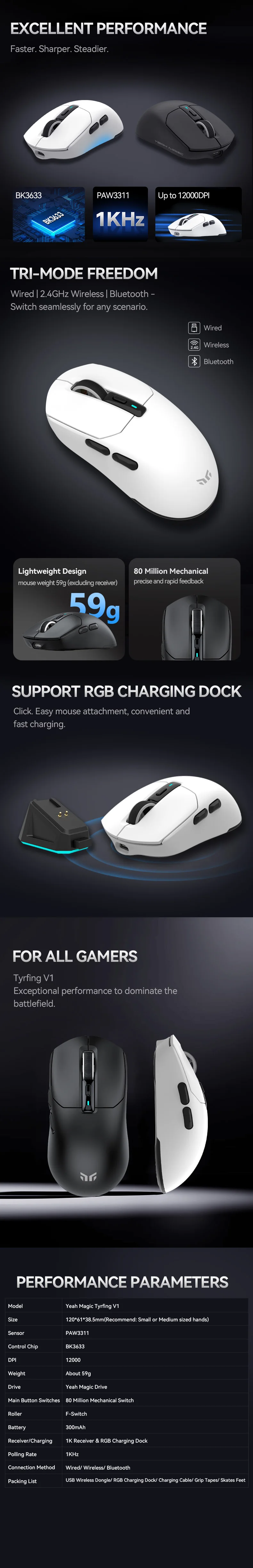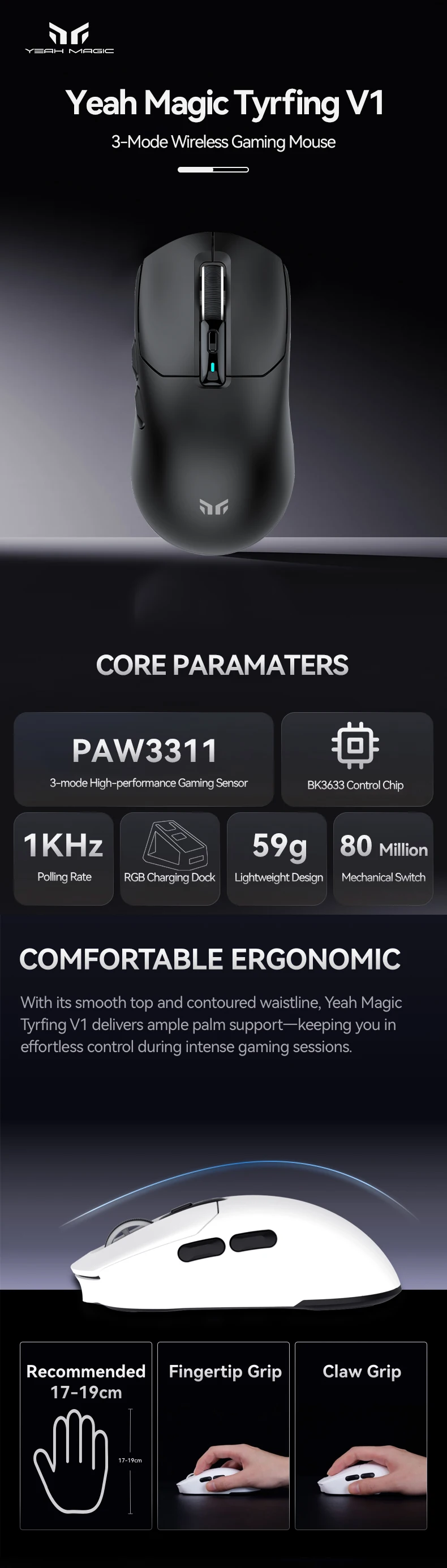 Sensor model: Pixart 3311 (12000 DPI|300 IPS|35G)